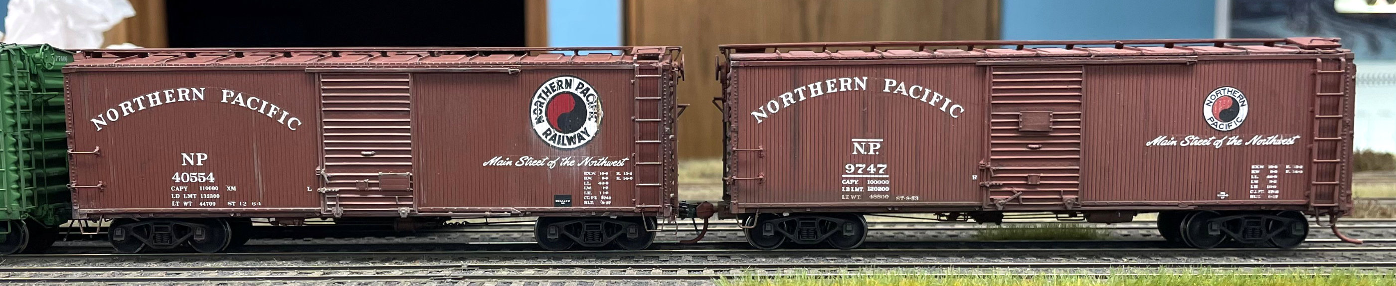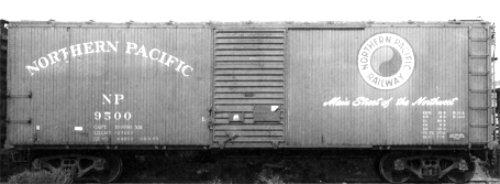 The Northern Pacific Railway purchased 520 box cars in the 9480-9999 number series in 1937. The prototypes followed a similar design as the A.A.R. 1937 box cars. An excellent and complete history of these cars was published in Railway Prototype Cyclopedia (RP CYC) 23 by Patrick C Wider, Mid-Century Composite Box Cars – Late Wood-sheathed Anachronisms.