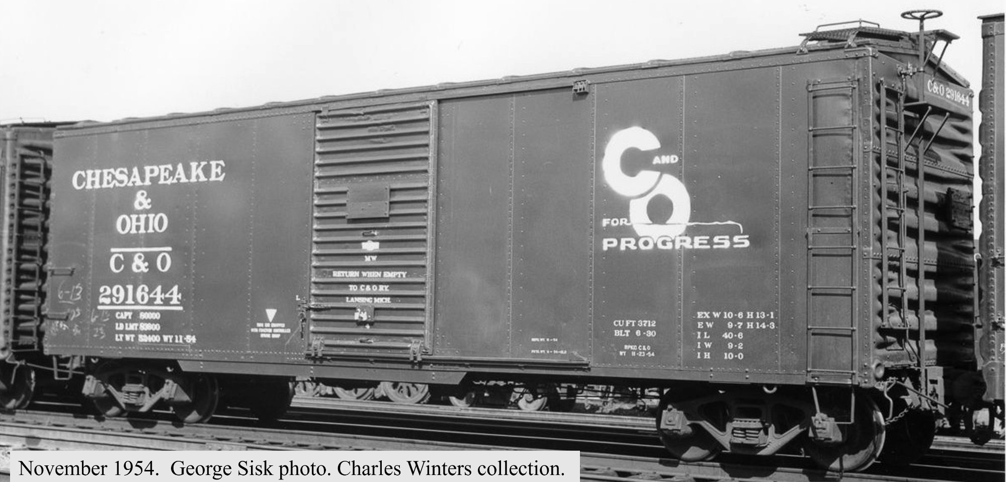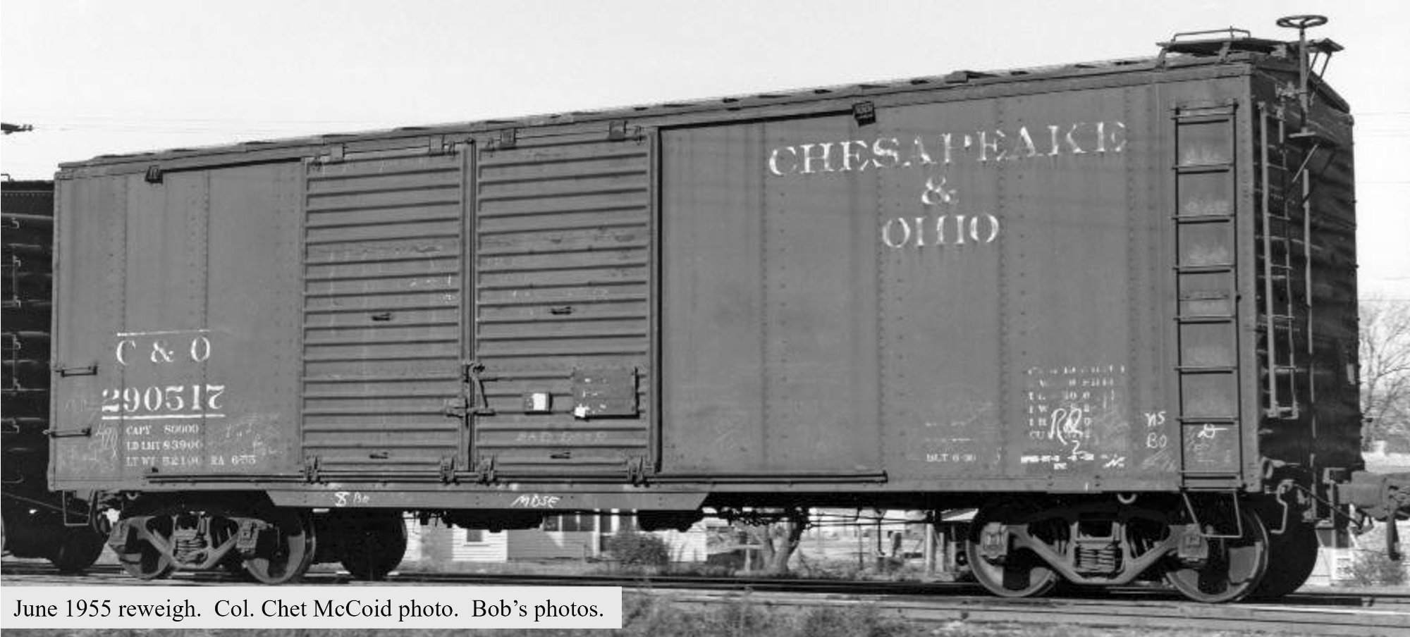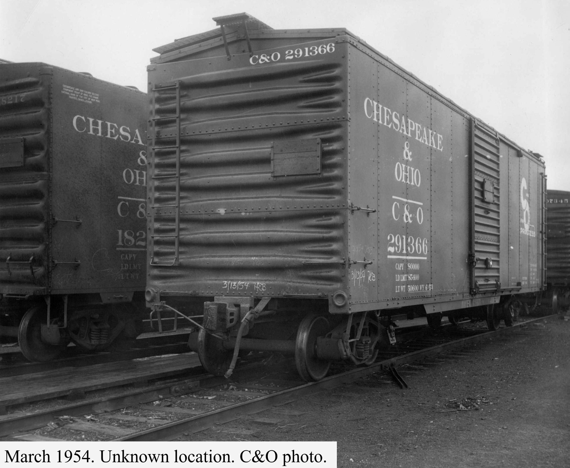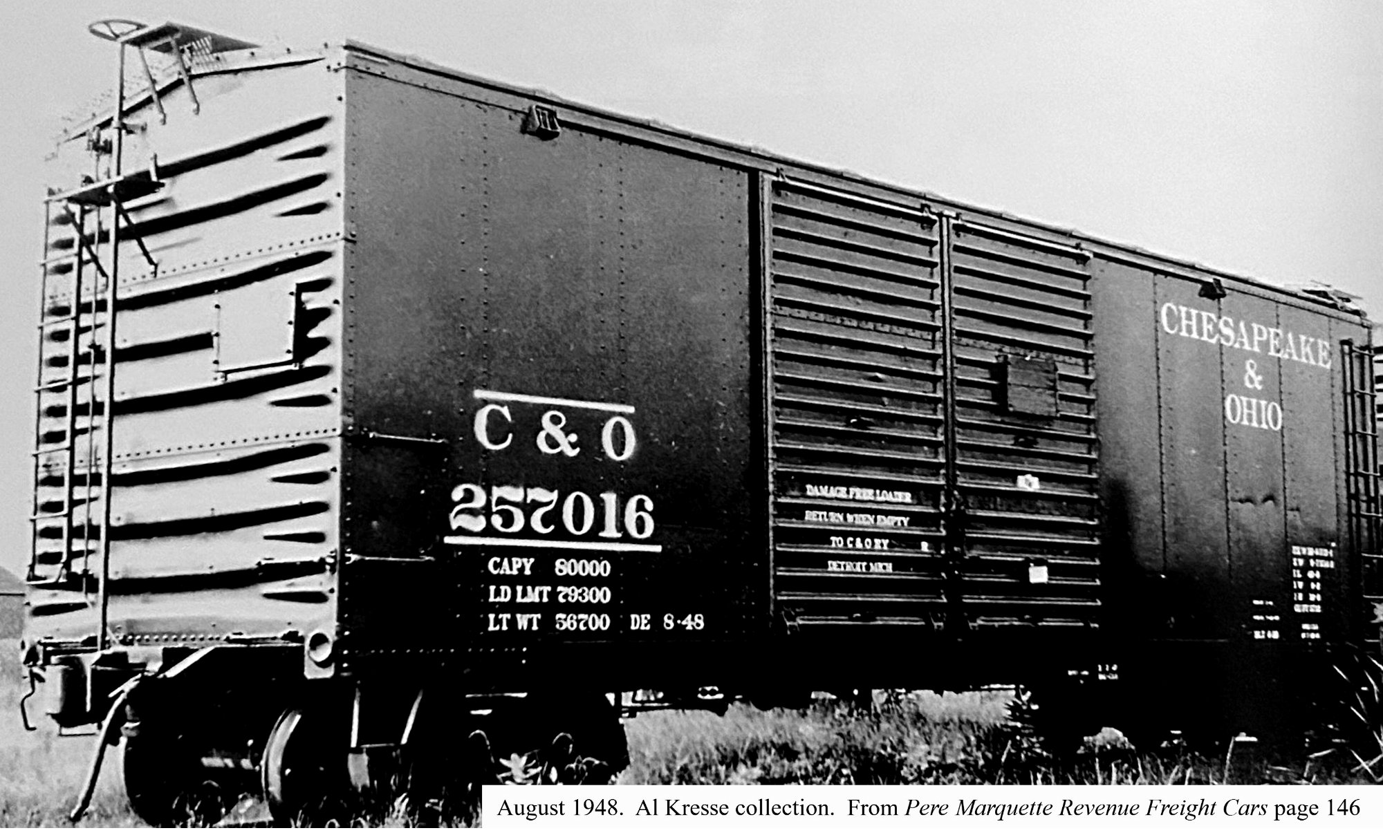 Usually, the cars were renumbered by simply adding a “2” in front of the old PM number. Thus, PM 91299 became C&O 291299. However, both railroads tended to renumber cars when they were assigned to a new service. As an example, 60 cars that were given Evans auto parts loading racks in 1948, were reclassed XAP, and were renumbered to C&O 257000-257059. Also, 100 cars were “leased” by the C&O from the PM in May of 1935 and renumbered to C&O 6600-6699. These cars were never returned and kept these numbers throughout their service lives.